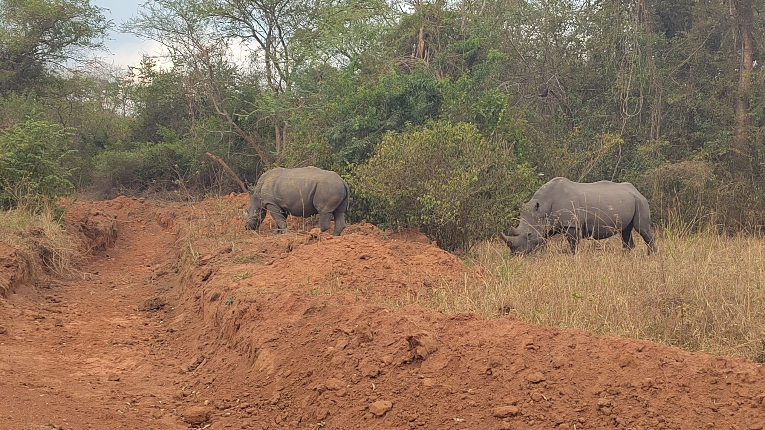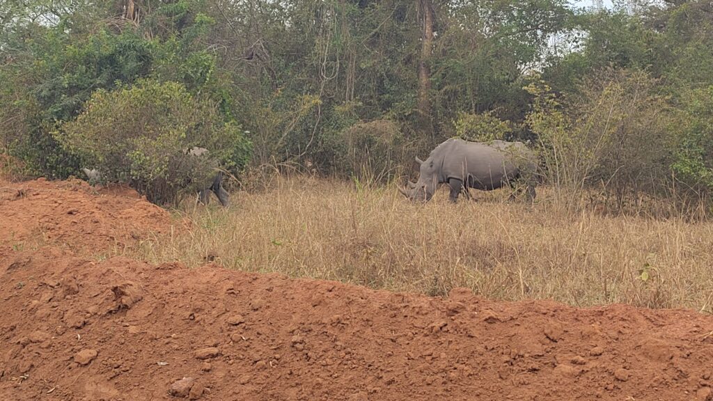 Nicht weit vom Murchison Falls Nationalpark haben wir die Ziwa Rhino and Wildliferanch besucht. Diese Aufzuchtstation hat sich den gefährdeten Nashörnern verschrieben. Einst heimisch in Uganda sind sie jetzt in der Natur kaum mehr zu finden. So hat die Ziwa Rhino and Wildliferanch es geschafft, aus ursprünglich sechs Tieren, inzwischen knapp 50 Nashörner in der 4. Generation großzuziehen. Einige von ihnen werden in naher Zukunft auch ausgewildert – unter anderem in den Murchison Falls Nationalpark. In der „Rhinoranch“ erlebt man Safari mal ganz anders. Anders als sonst, sitzt man hier nicht geschützt im Auto, sondern macht sich zu Fuß auf den Weg, die Nashörner zu entdecken. So kommt man ziemlich nah ran – fast schon zu nah. Doch unter der Aufsicht unseres Guides konnten wir sicher auf wenige Meter ran und konnten so nicht nur großartige Bilder, sondern auch eine unglaubliche Erfahrung mitnehmen.