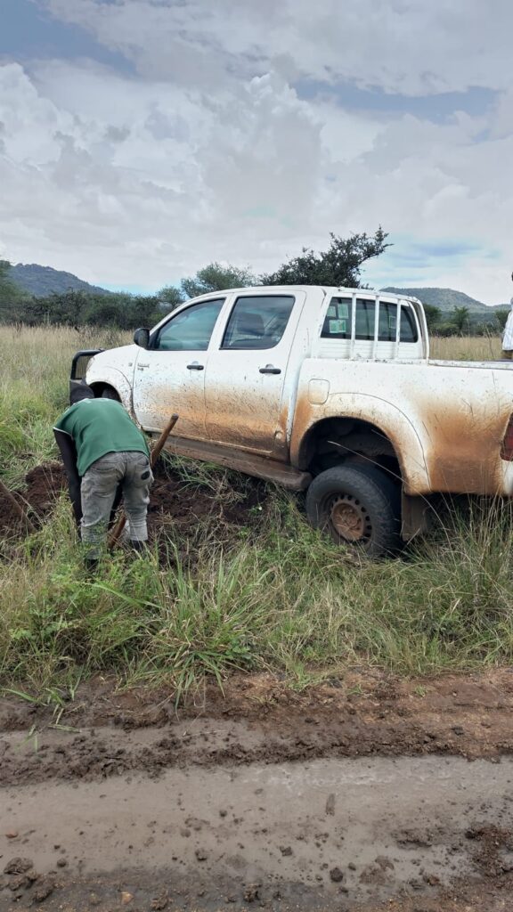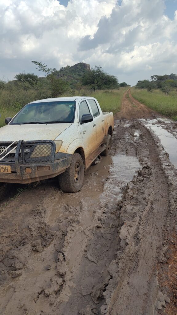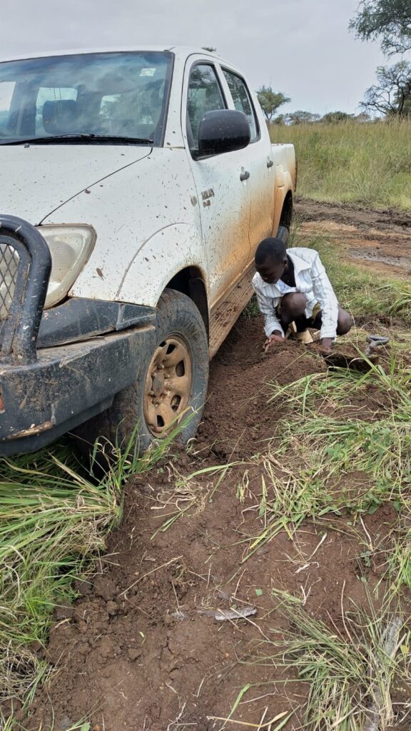 Regen ist hier in Karamoja – einer sehr trockenen Region – eigentlich ein Segen. Lange haben wir gewartet, dass der Regen kommt. Oft zur falschen Zeit oder in der falschen Menge entscheidet die Regenmenge, ob die Menschen hier eine Ernte haben oder nicht. Man könnte durchaus sagen, dass Leben und Tod davon abhängt. Doch nicht nur auf die Landwirtschaft hat der Regen einen Einfluss, sondern auch auf die Straßen. Doch leider ist dieser Effekt nicht positiv. Da die meisten Straßen hier in Karamoja nicht asphaltiert sind, bemerkt man den Effekt auf die gesamte Infrastruktur hier sofort. Die roten Lehmpisten, die sonst schon eine Herausforderung sind, verwandeln sich in rutschige, tiefe Schlammbahnen. Für uns bedeutet das nicht nur längere Fahrzeiten oder schmutzige Schuhe – es bedeutet, dass ganze Lieferketten zusammenbrechen.